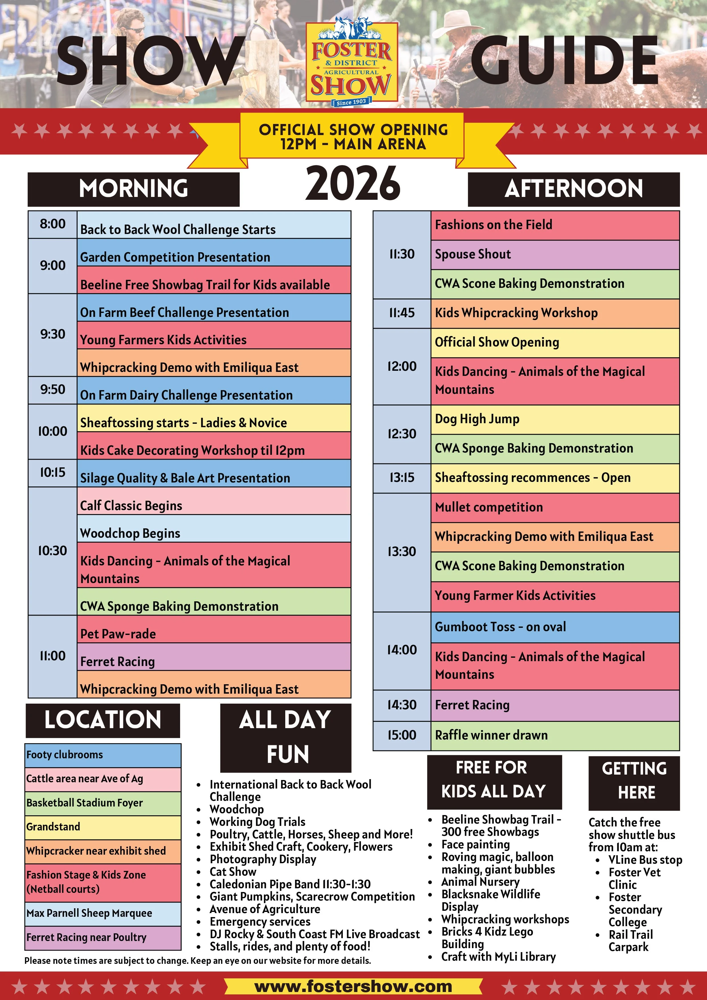 Get your hands on a hardcopy of our 2026 Show Schedule - now available at various locations in South Gippsland including Foster Post Office, Foster Foodworks, Ag Warehouse Foster, Foster Vet Clinic