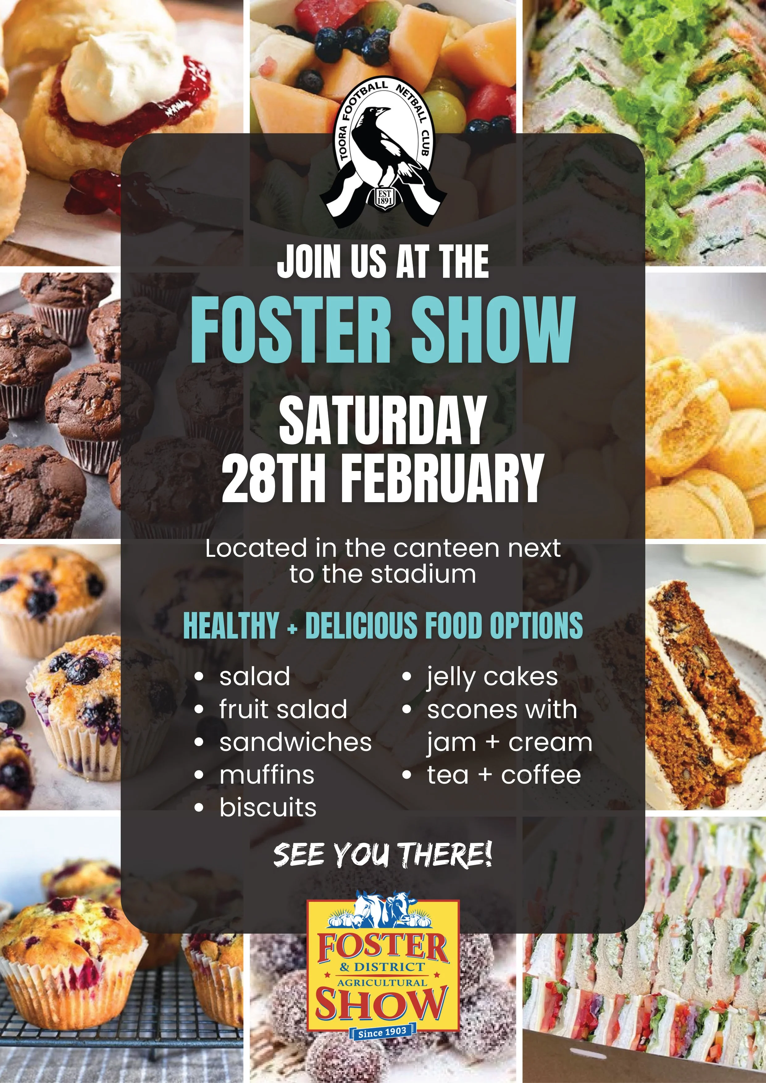 Food - Toora Football Netball Club, Candy Cave, CJ’s Catering, Foam Haven, Foster Primary School, Happy Acai, MA Hot Food Van, Mr Soft Serve Gelato, Rainbow Frosty Ice, Sugar Crush, Superwhip Icecream, Small Batch Sweets, Twista King Spuds and Poffertjes, UC Food 2 Go.